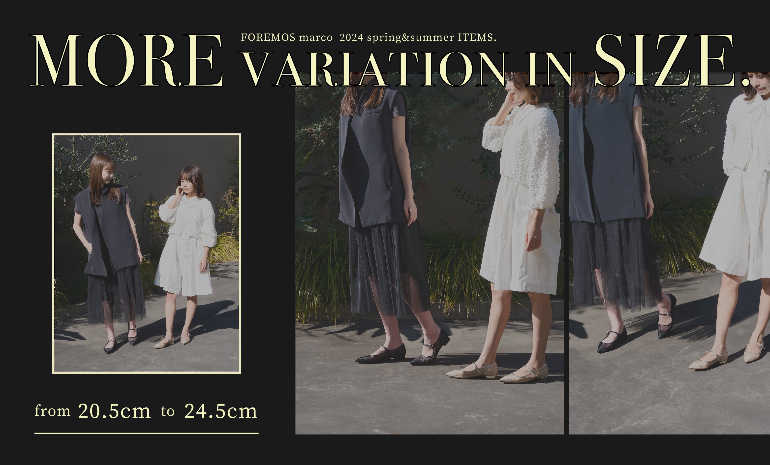 FOREMOSmarcoならではの足をキレイに見せるデザインや履き心地をそのまま落とし込み、より多くのお客様に満足していただける1足をご提供いたします。