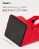 バッグ自体が自立し倒れることがないため、たくさん入れた際に起こりがちなバッグの中身が雪崩のように落ちてくるといった現象とは無縁に!