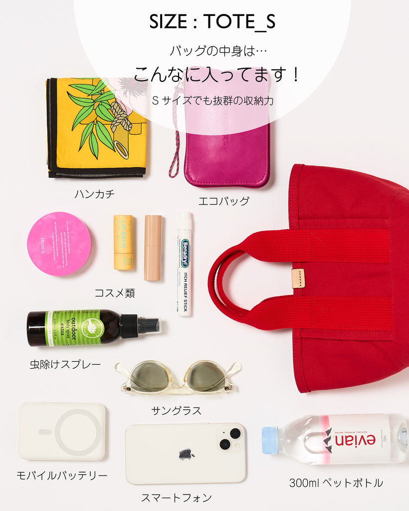 TOTE_Sはブラックやホワイトはもちろんのこと、レッドやブルーなどコーディネートのワンポイントになるような遊び心あるカラー展開!