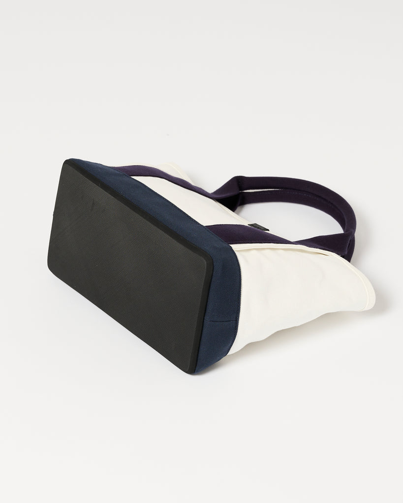 靴底にも使用される頑丈なラバーシートをバッグの底面に縫い合わせることで、バッグ自体が自立し倒れることがないため、たくさん入れた際に起こりがちなバッグの中身が雪崩のように落ちてくるといった現象とは無縁に!