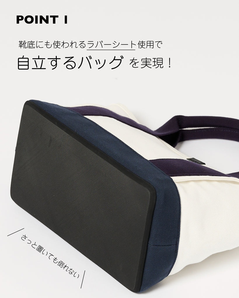 POINT① 靴底にも使われるラバーシート使用で自立するバッグを実現!