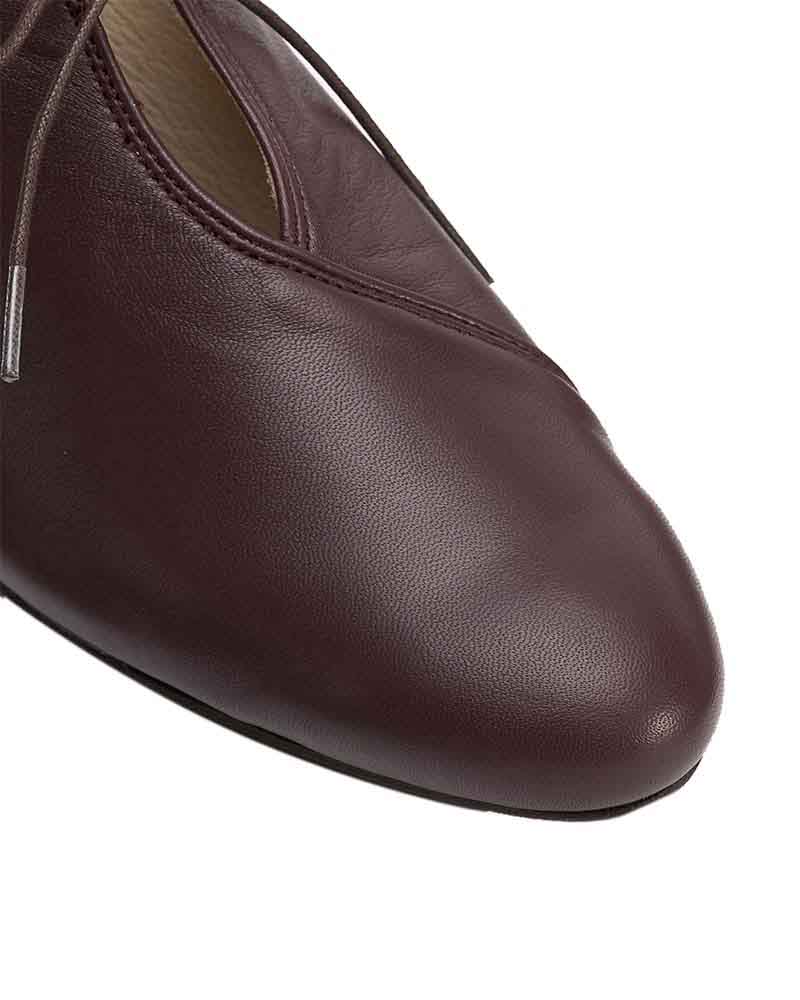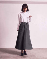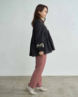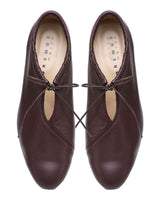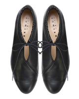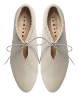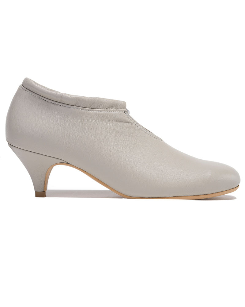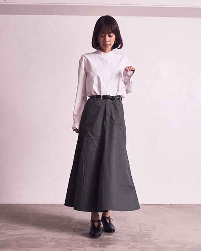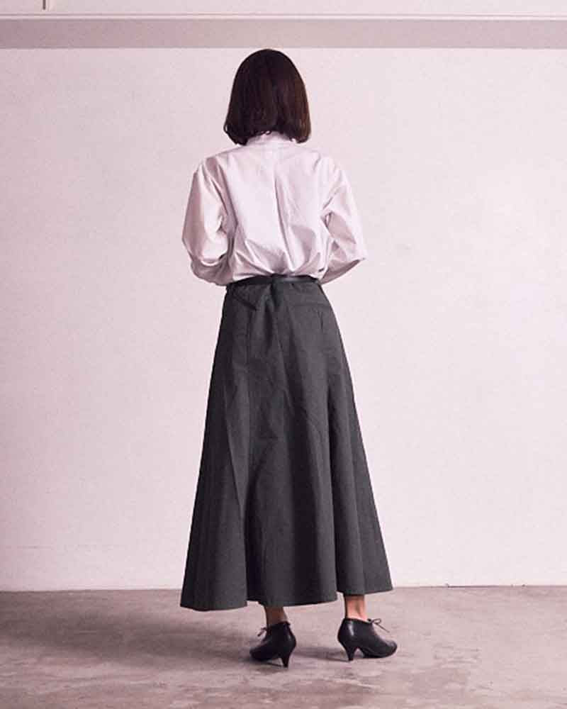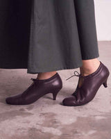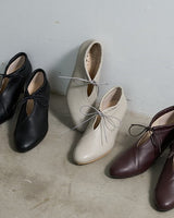 甲のスリットディテールが程よい抜け感を出してくれるので、フルレングスのボトム〜ミモレ丈のスカートまで、マニッシュにもエレガンスにも使いやすいアイテムです。タイツやソックスとの合わせもおすすめです。