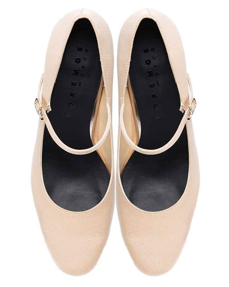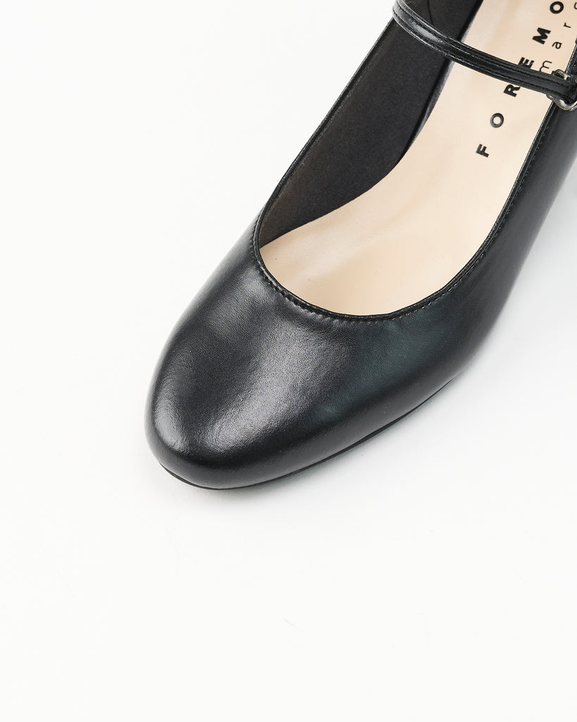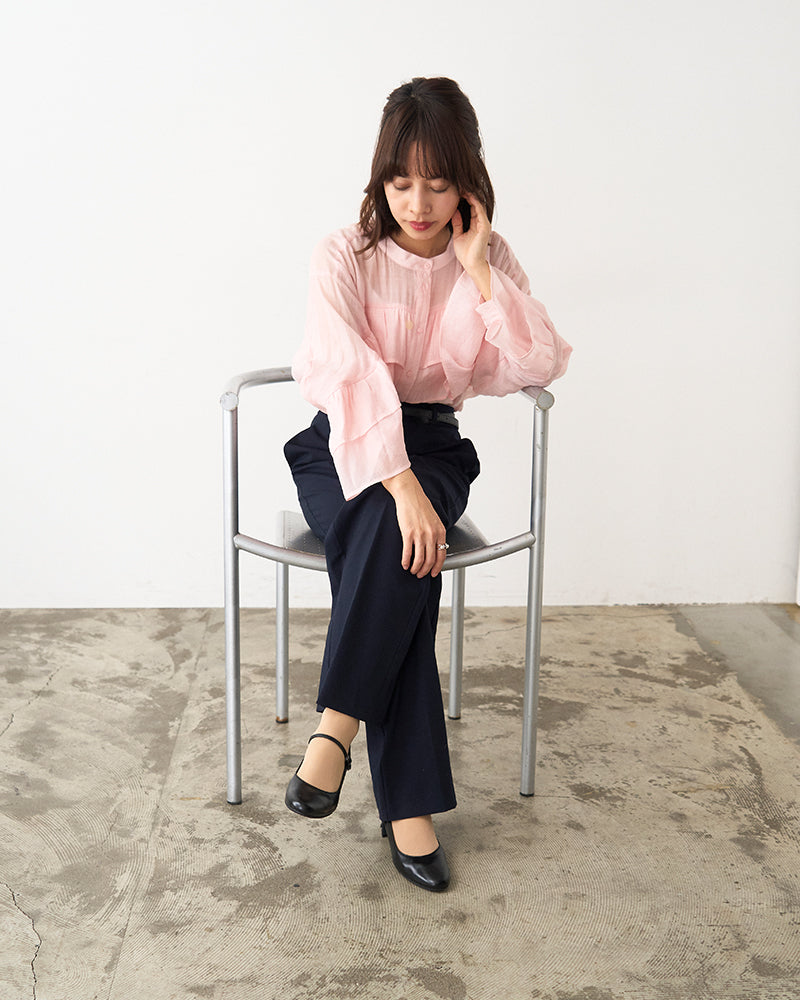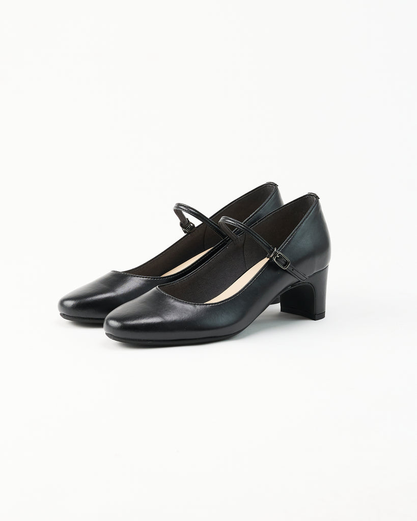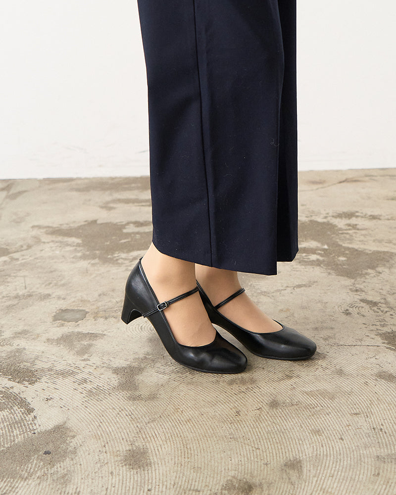 スカートスタイルに上品な印象を与えてくれるラウンドトゥ。ストラップが細めなので、子供っぽくならないのが嬉しいポイント。フォーマルなシーンは意外と立っている時間や歩くことも多いので、このアイテムなら安心です。