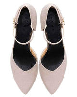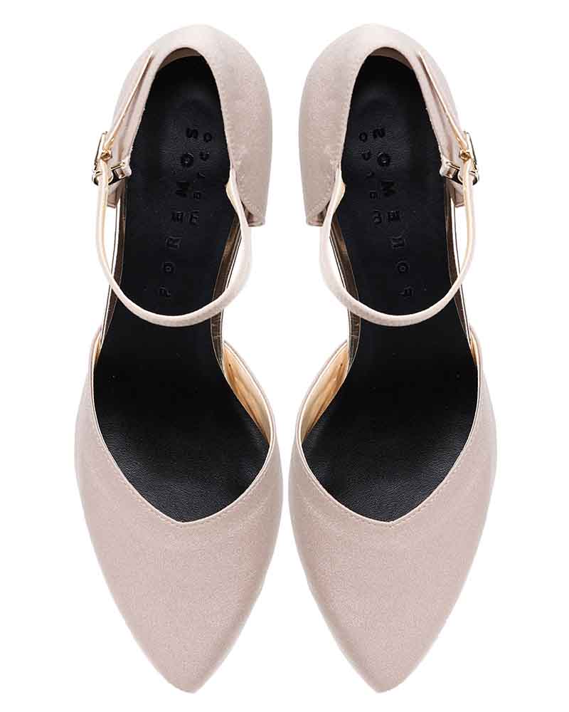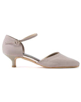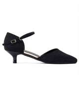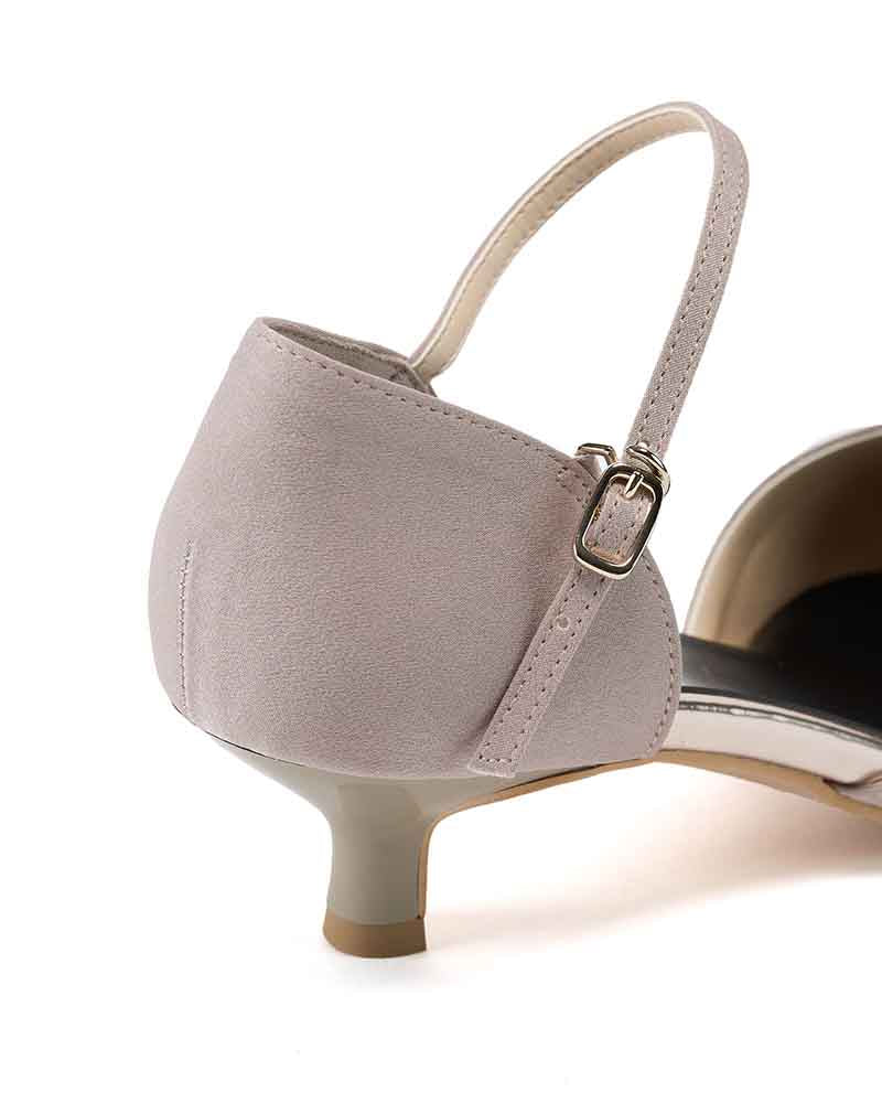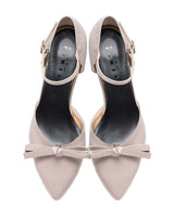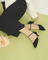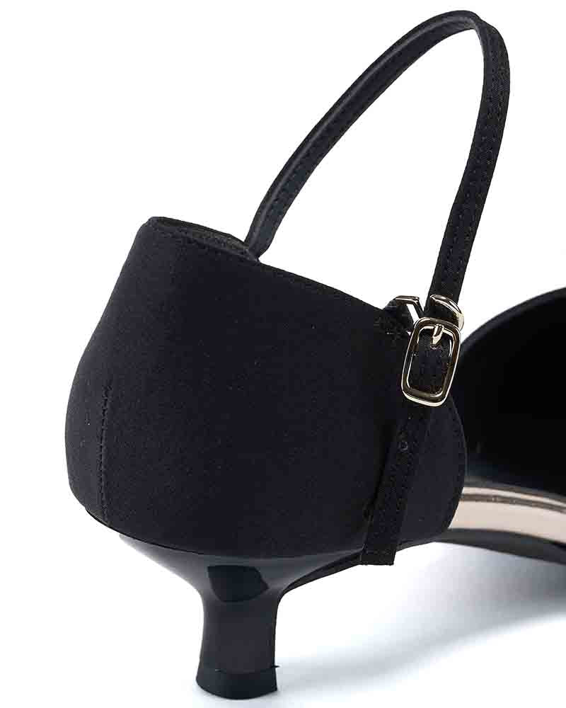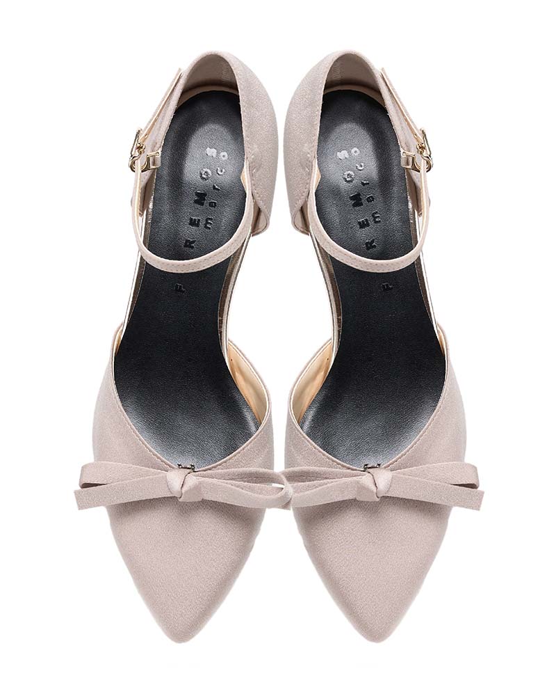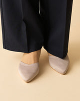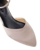 ヒールが苦手な方でも、フォーマルなシーンに履きやすいポインテッドセパレートパンプス。低めに設定したヒールでも、ポインテッドトゥとセパレートの抜け感でエレガントな1足に仕上げています。光沢感を抑えた上品なサテン生地を仕様しているので、ボトムの素材感とのマッチングも悩まずにお使いいただけます。