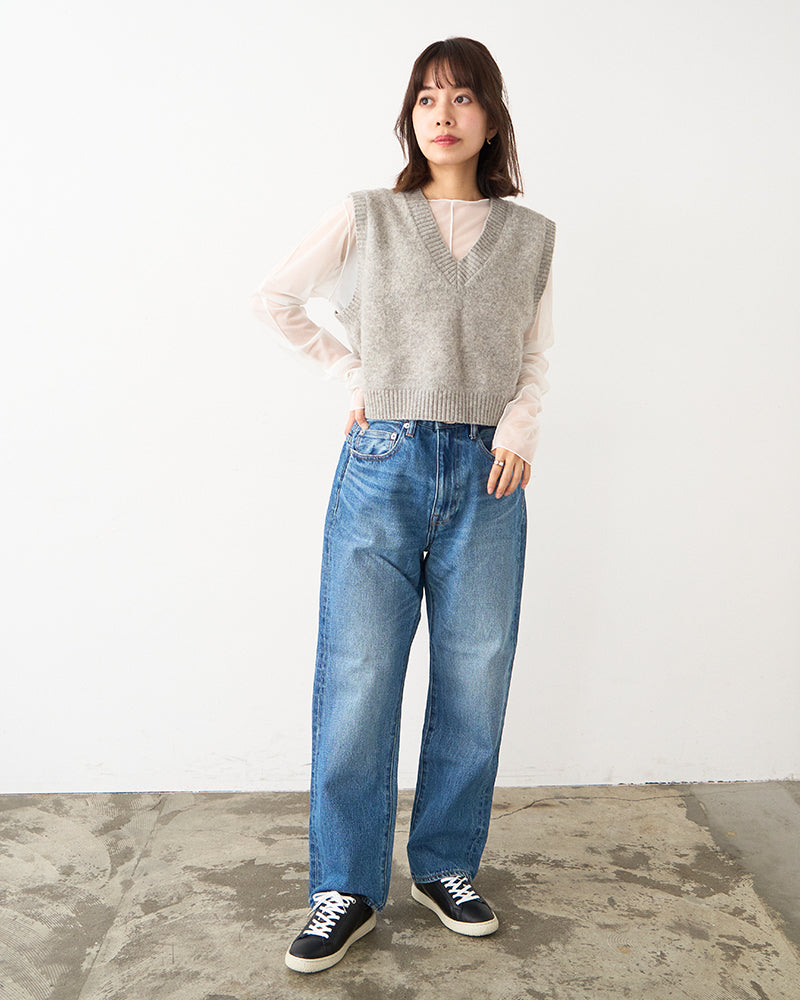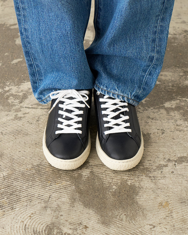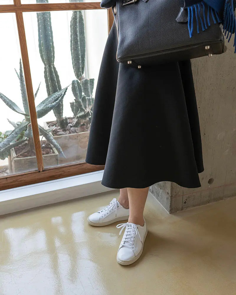 パーソナルスタイリストbemiさんとのコラボアイテム。兼ねてから要望の多かった「スニーカー」。アイレットの数、カットライン、アッパー素材と色、ソールの質感と色…細部までこだわることで、小足さんでも大人っぽく履けるスニーカーが完成しました。