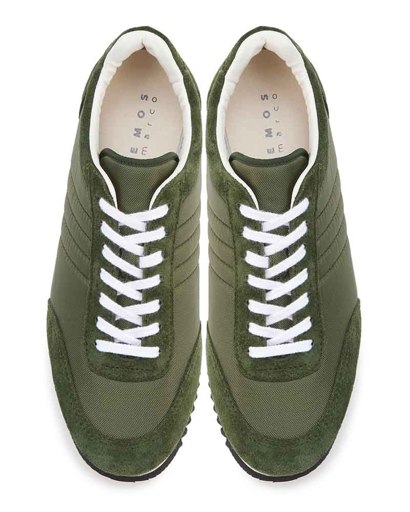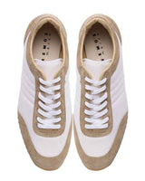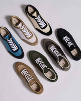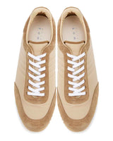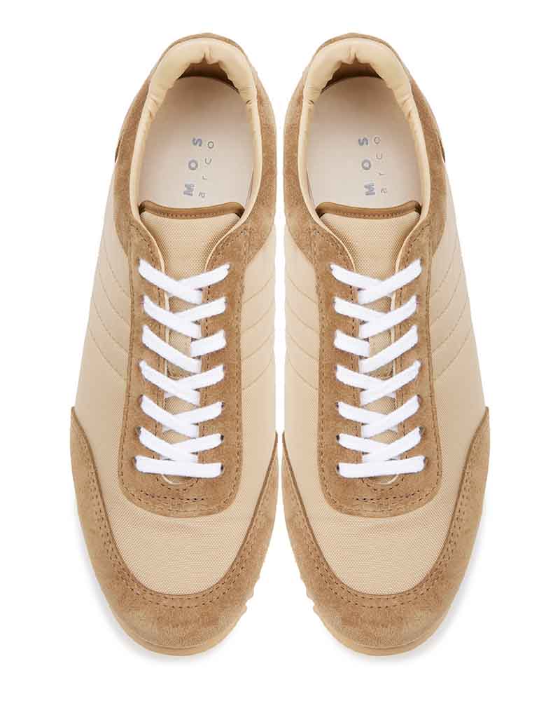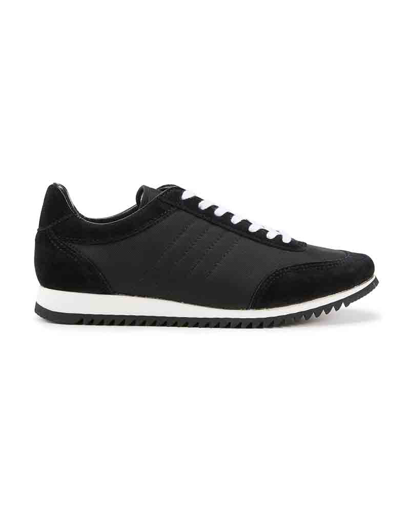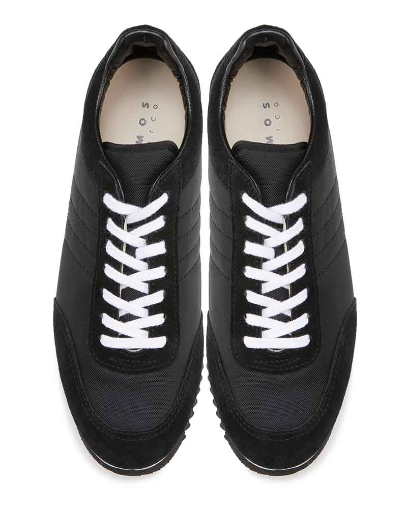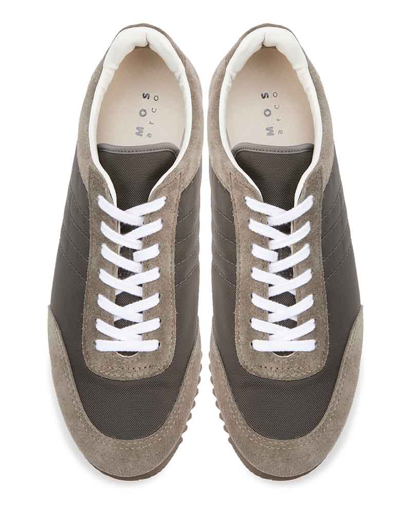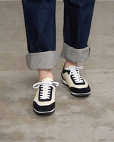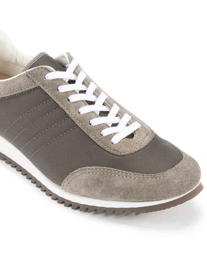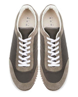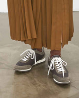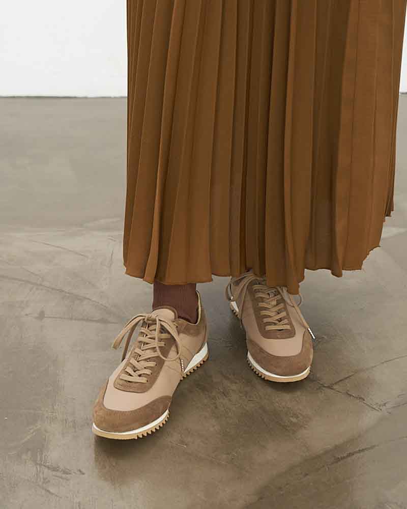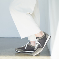 スエードのレザーとナイロン生地をコンビニしたスニーカーはワントーンで仕上げることでキレイ目な印象に仕上げています。ブラックはシックに、チャコールは少し辛口なクールな印象、ベージュはモードなスタイリングにもぴったり。ソールには凹凸の深いゴム底を使用しているので、グリップ力も抜群。
