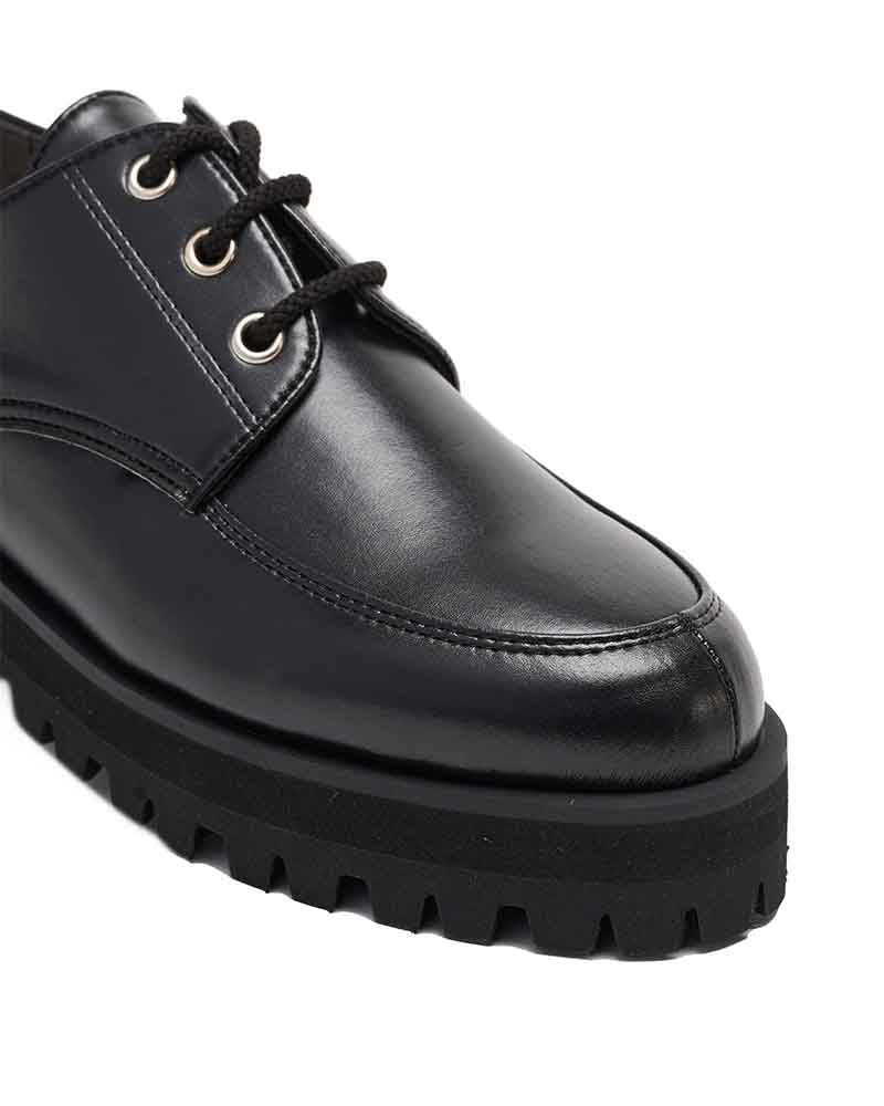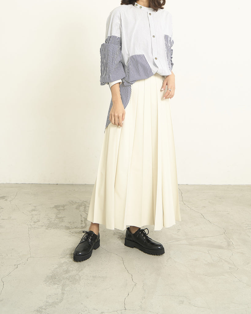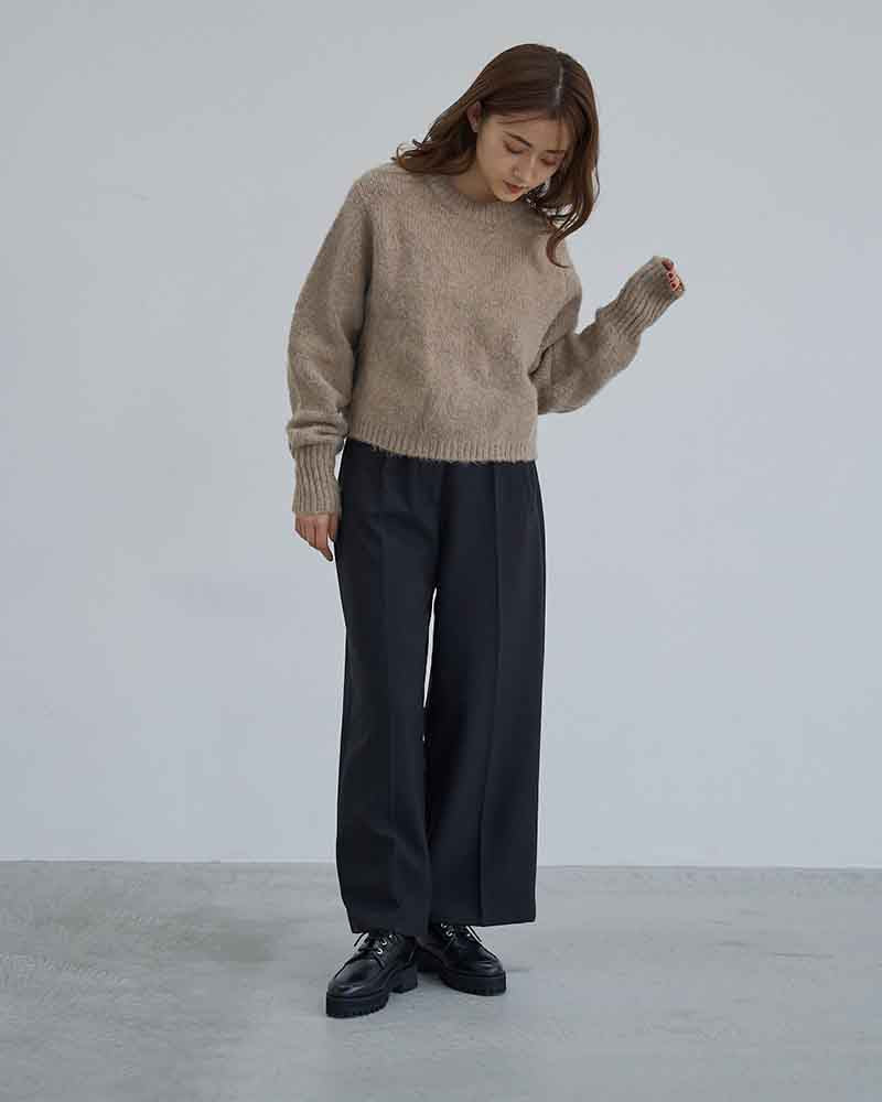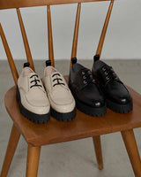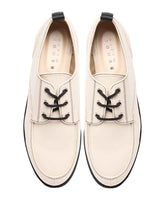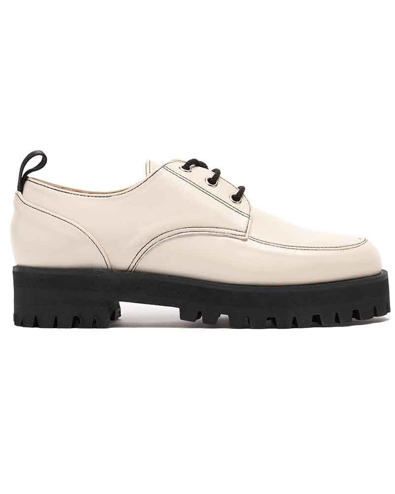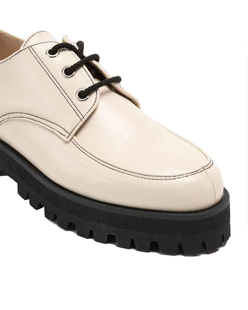 ソックス合わせがおすすめのシューズ。今期トレンドのハーフボトムとの相性も抜群です。ブラックはモードに、エクリュはバイカラーを楽し見ながらカジュアル使いしやすいカラーに仕上げています。