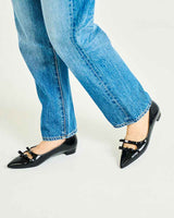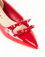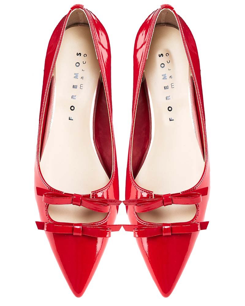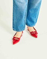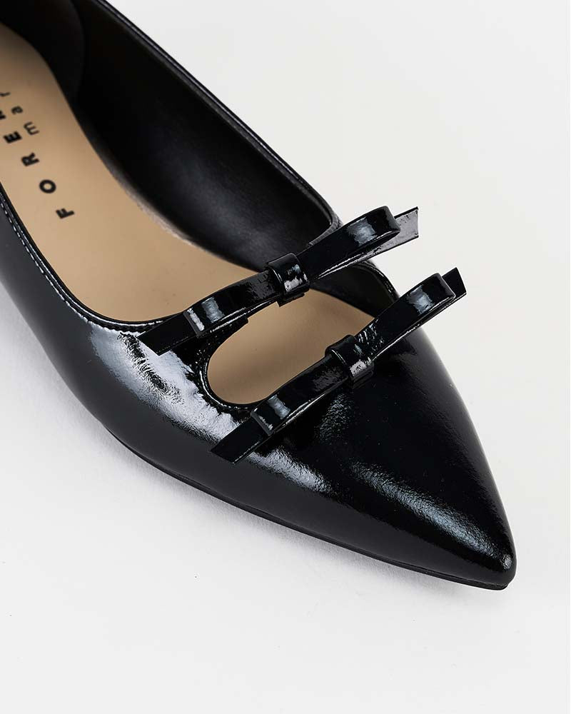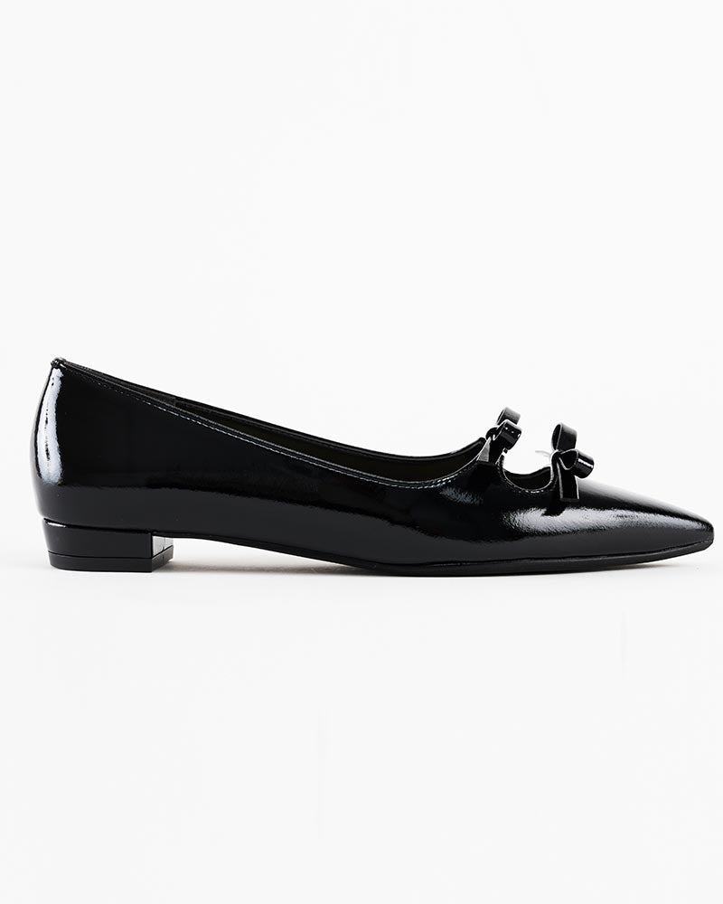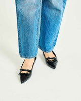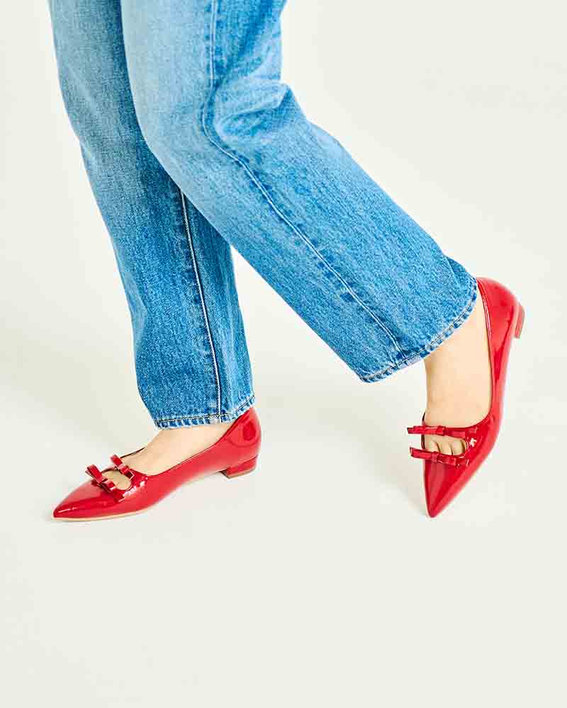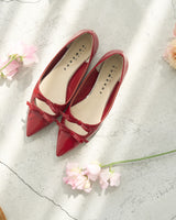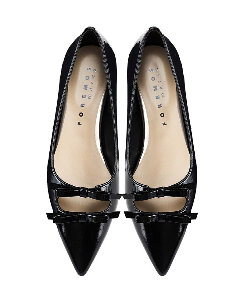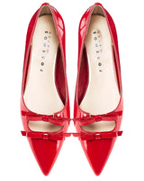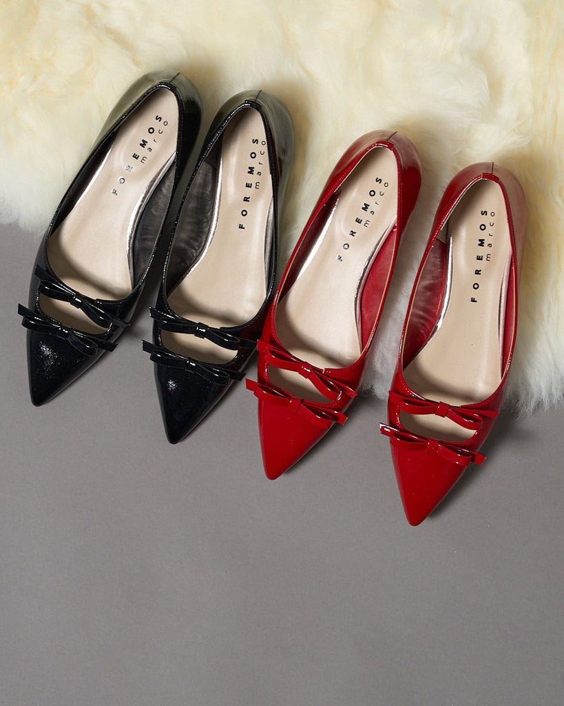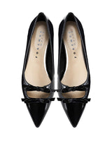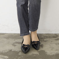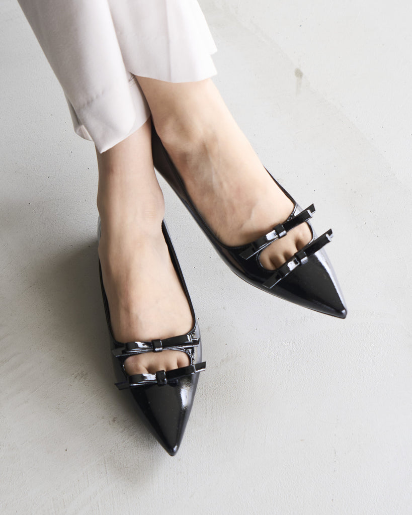 シャープでクラシックなポインテッド木型に、ダブルリボンでフェミニンな要素をミックス。スリットから除く素肌が抜け感を演出してくれます。1.5cmのヒールで歩きやすく、きちんと見えもかなう仕様になっています。