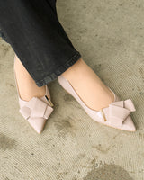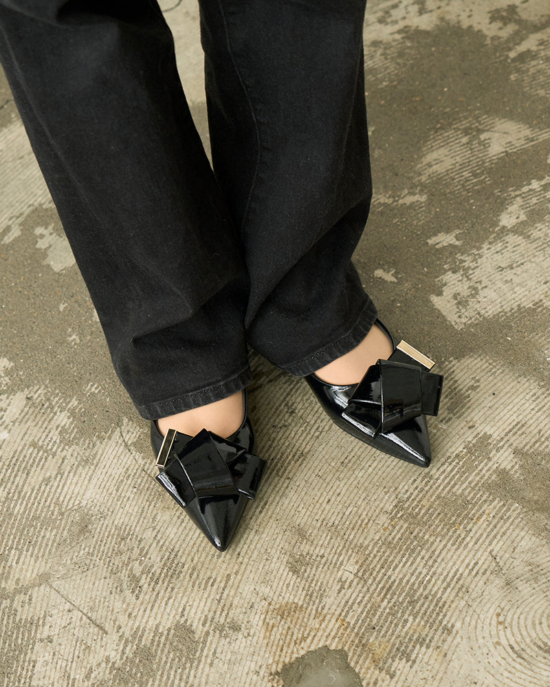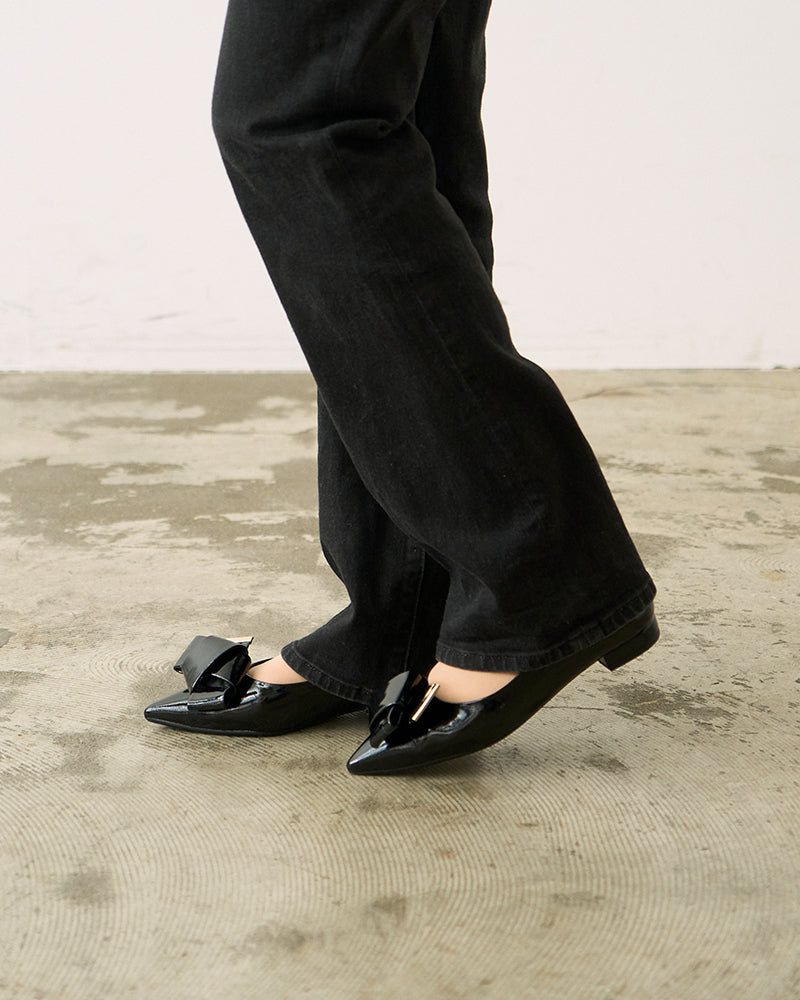 ボリューム感のあるリボンも、シャープなポインテッドに載せることで大人っぽく取り入れてもらいやすいアイテムです。シャツ×デニムなどベーシックかつシンプルなコーデの足元に。