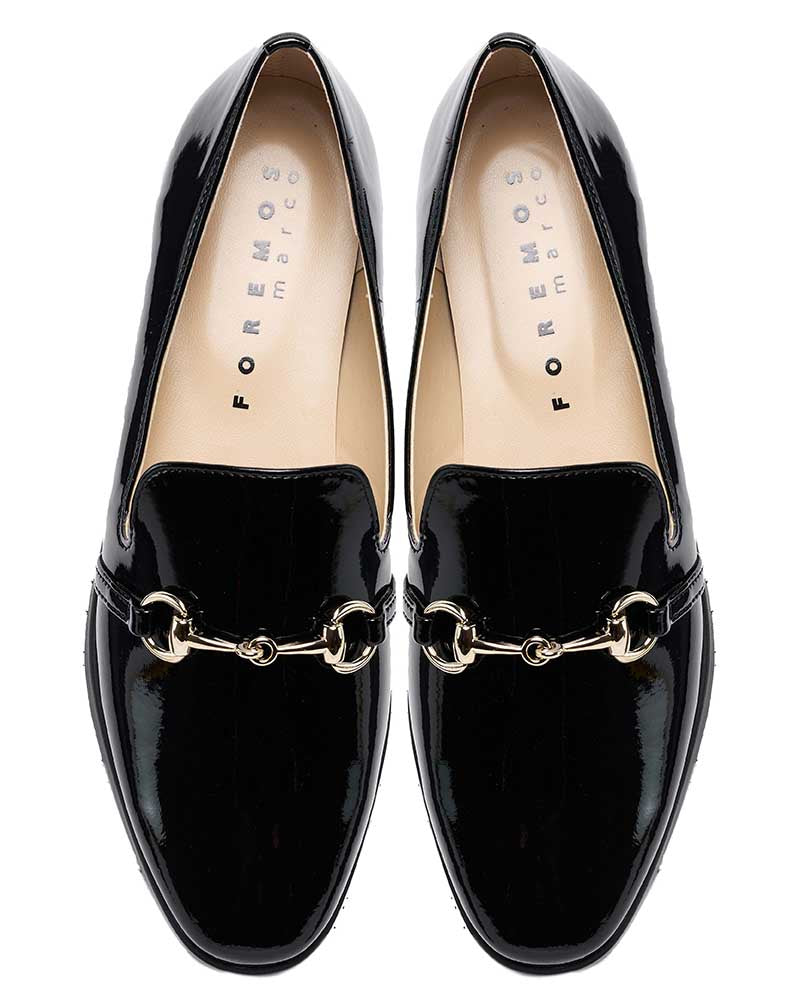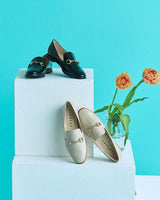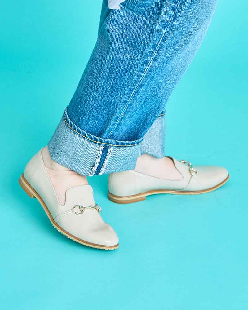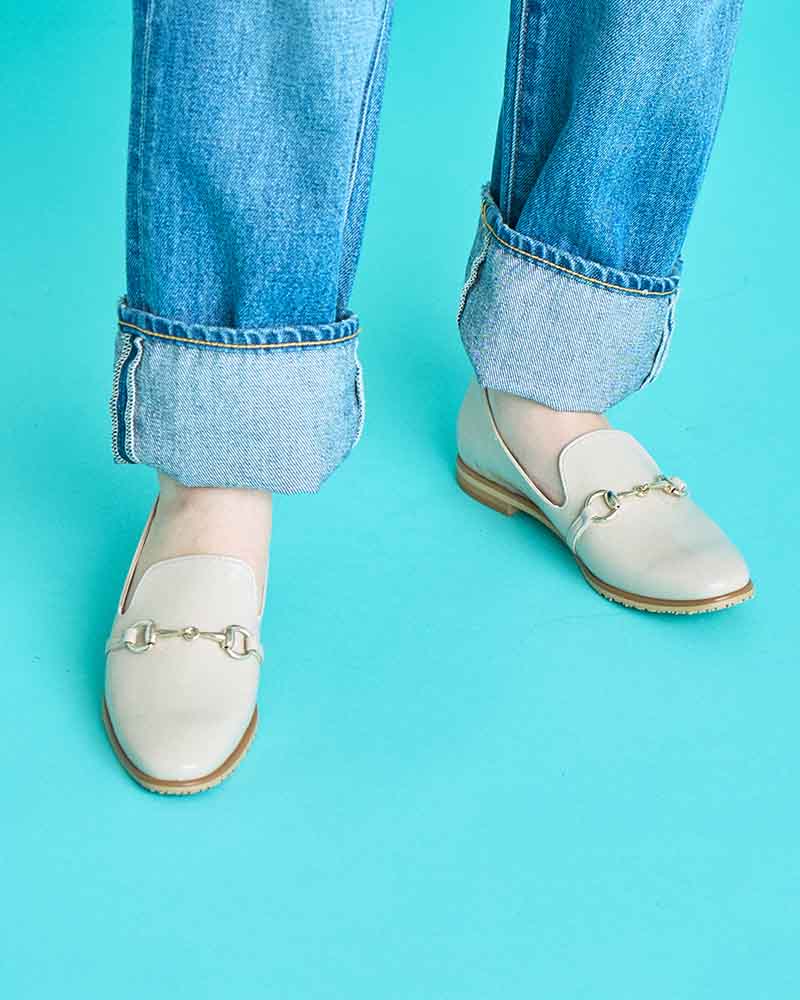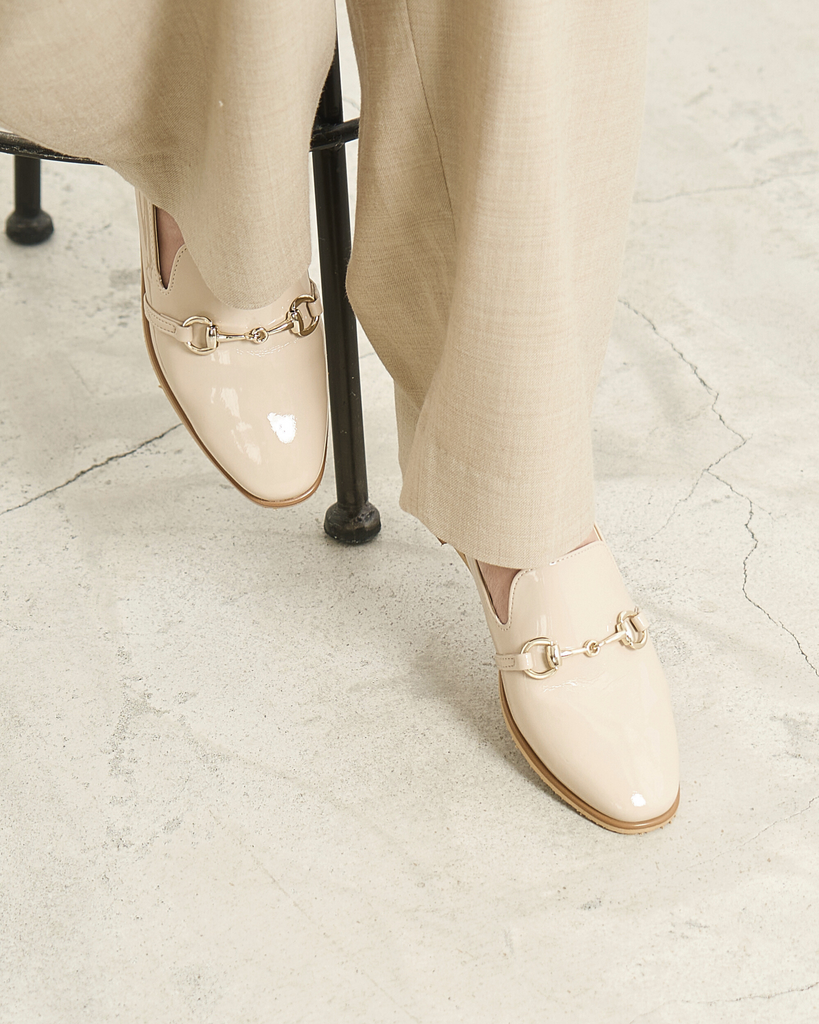 キレイめのスタイリングにも合わせやすいベージュエナメルと、汎用性のあるブラックエナメルでオンオフ問わずに雨のシーンで活躍してくれるアイテムです。ビット金具も大きすぎず上品な印象に。
