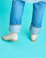 オペラシューズのようなデザインでキレイめに履けるので、オフィスコーデのようなキレイめな服にも合わせやすいです。